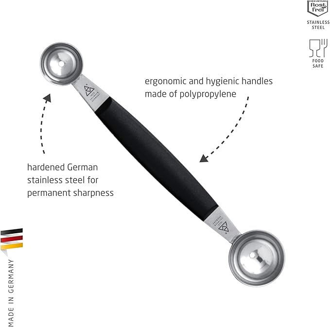 Triangle's Double-sided Melon Baller features two differently sized scoops for twice the possibilities. The Double-sided Melon Baller with sharpened edges creates perfect balls from fruits, vegetables, cream or butter.